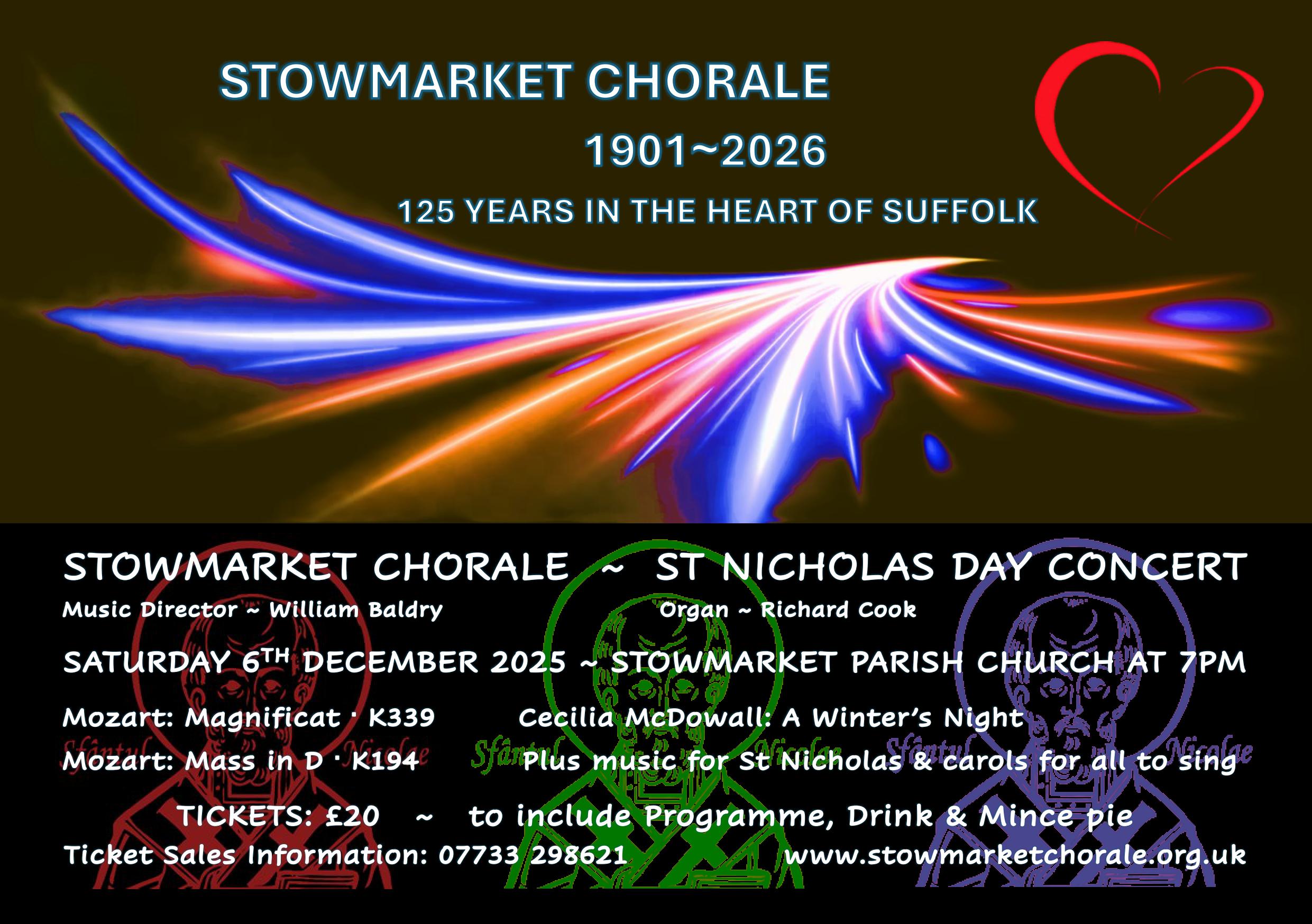 Stowmarket Chorale, ‘The Choir in the Heart of Suffolk’ is an ambitious, enthusiastic & friendly community choir, with a long history of promoting vocal music to a wide audience.